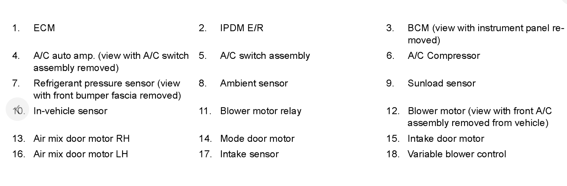 1.Remove the front floor duct (RH). Refer to "Exploded View" See: Air Duct > Removal and Replacement > Exploded View.