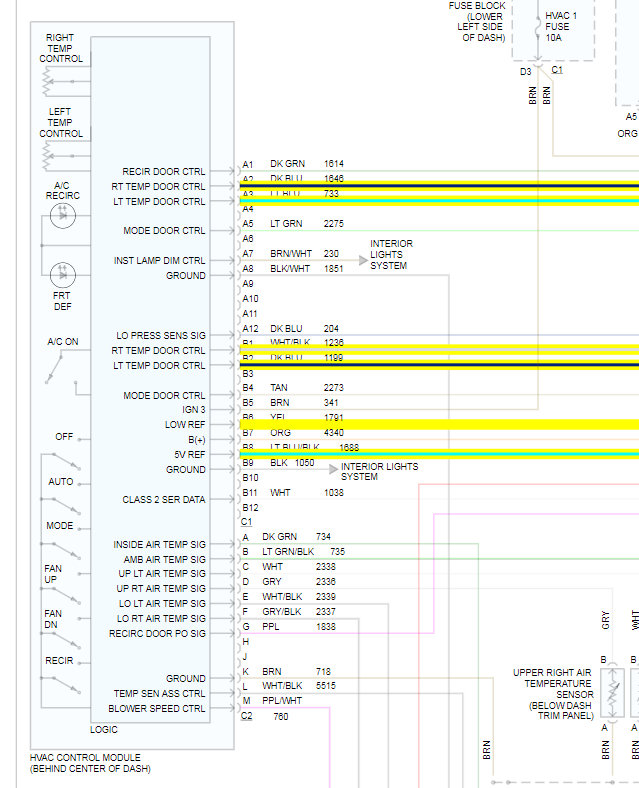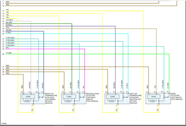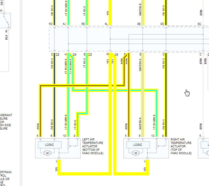 So even if you left it this way, the blend door would not change from that full position and it would blow hot air. You need the control module to be able to vary this voltage so that the door can move and change the temp.