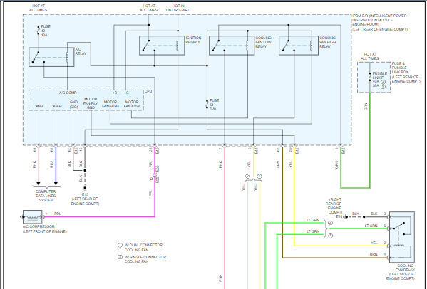 Compressor is not kicking on. Checked the fuse and it is good. I couldn't find a relay for it. I jumped the low pressure sensor to see if that was the problem but still no voltage. I wired the compressor directly to the battery and it kicks on. Maybe a wire diagram could help me pint point the issue?