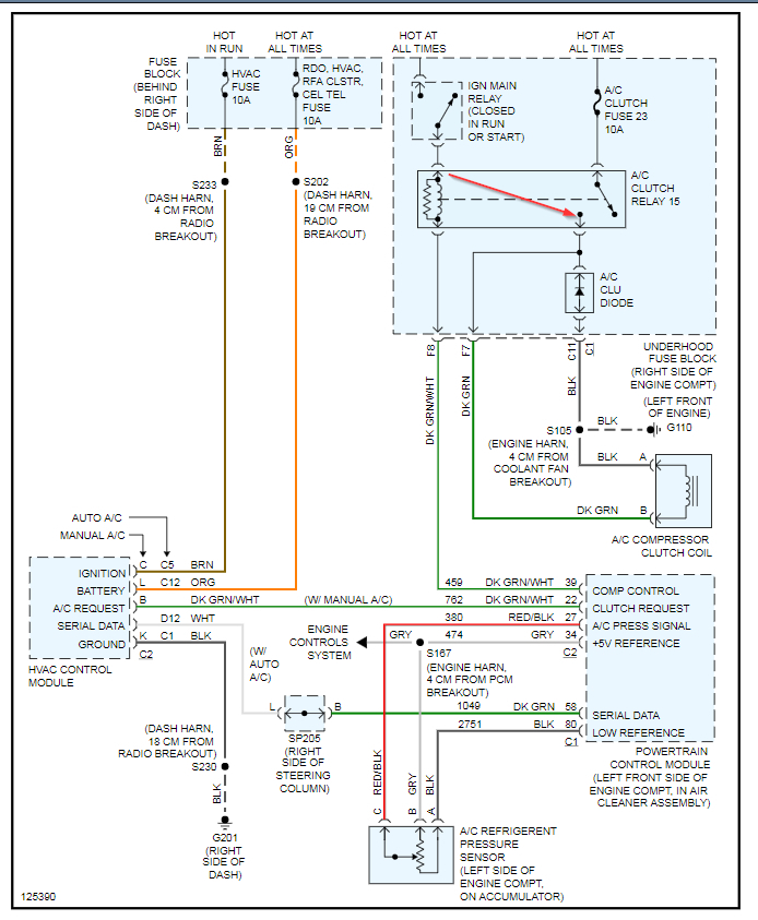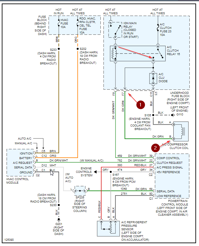 As for why you only have less then 1 volt at the compressor I think you are exactly correct. If you have 12 volts coming out of the relay at spot number 1 on the wiring diagram and have less then a volt at the compressor, then you have a wiring issue or a problem with that diode.