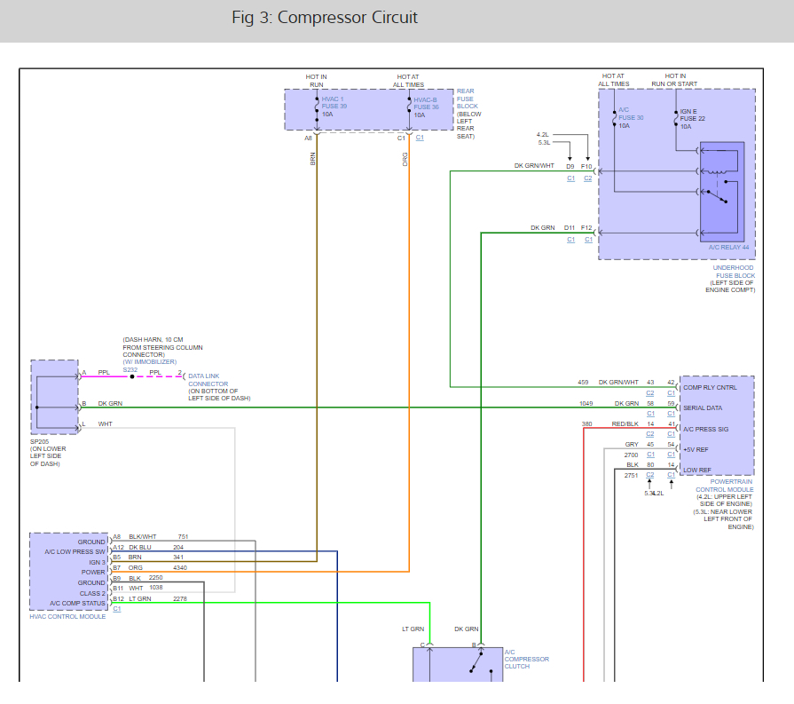 Okay, here’s an update: I check the voltage on the plug at the compressor dark green wire has 14 V the light green wire has 1.12 V.