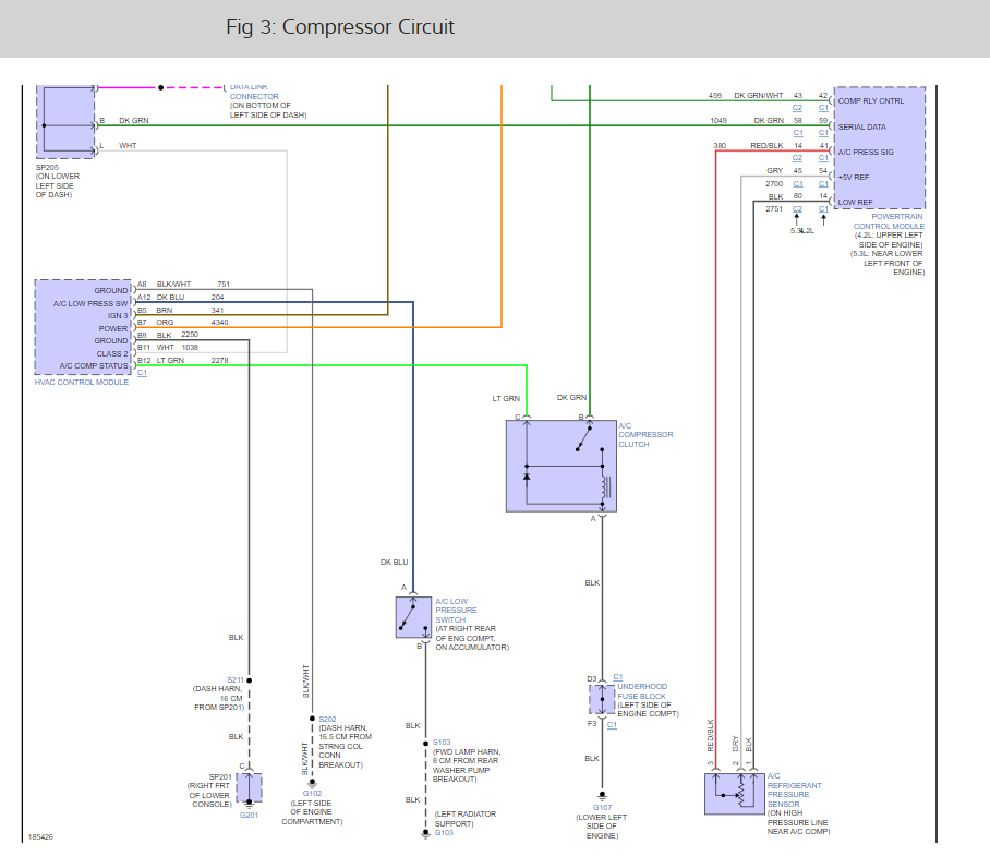Okay, so lets pull the plug on the compressor and measure the voltage to the compressor with the system on it should be 12 volts. One wire will have no voltage. This guide can help you with the test.