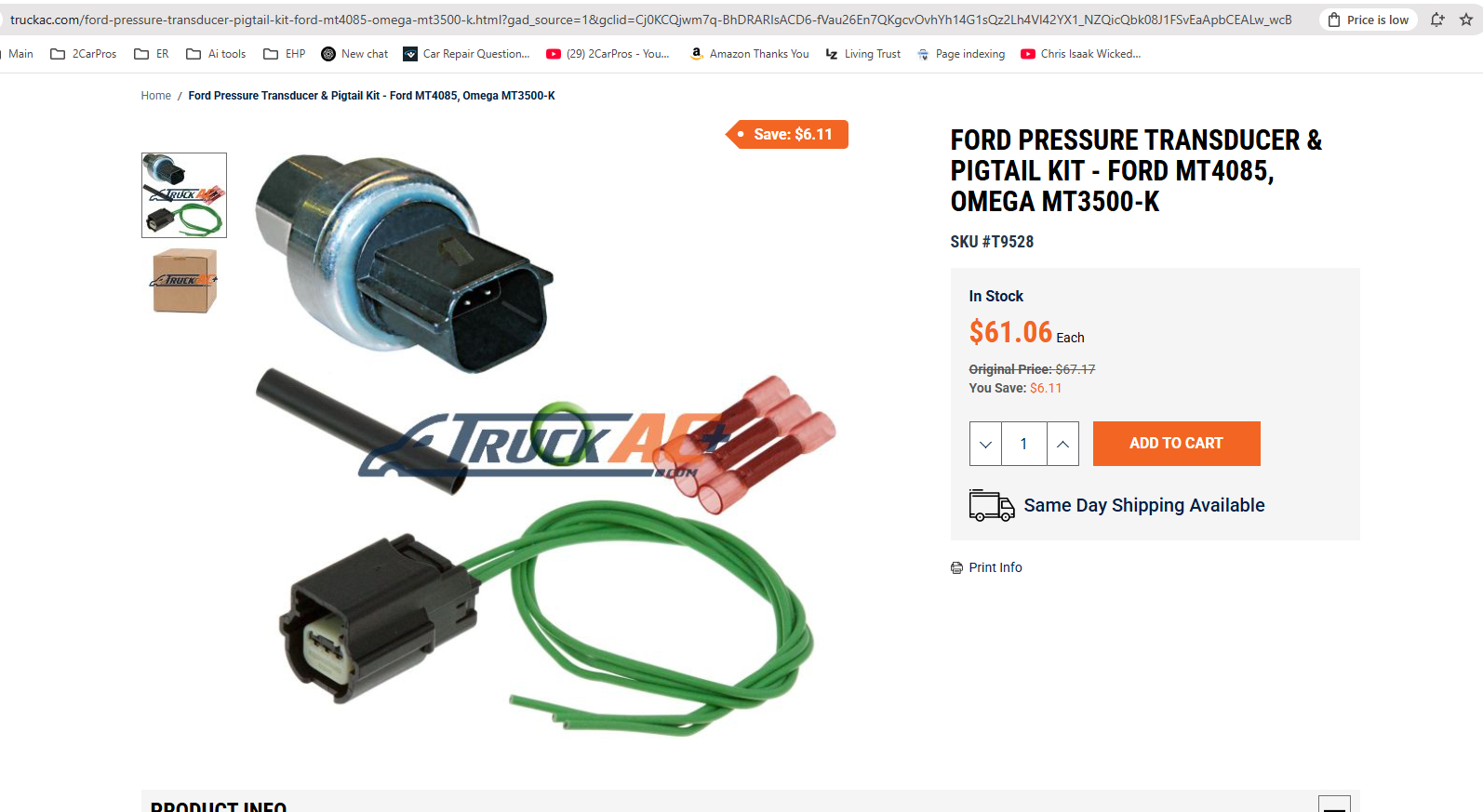 I had to replace the A/C condenser because of damage to the front passenger side. I think the plug that goes to this sensor at the bottom of the A/C condenser was cut off during the wreck. I need to replace but do not know the colors of the wire that goes to it or the type of plug. I have a pic of the only wire that I can find exposed. These wires are currently hanging out the side of the car.