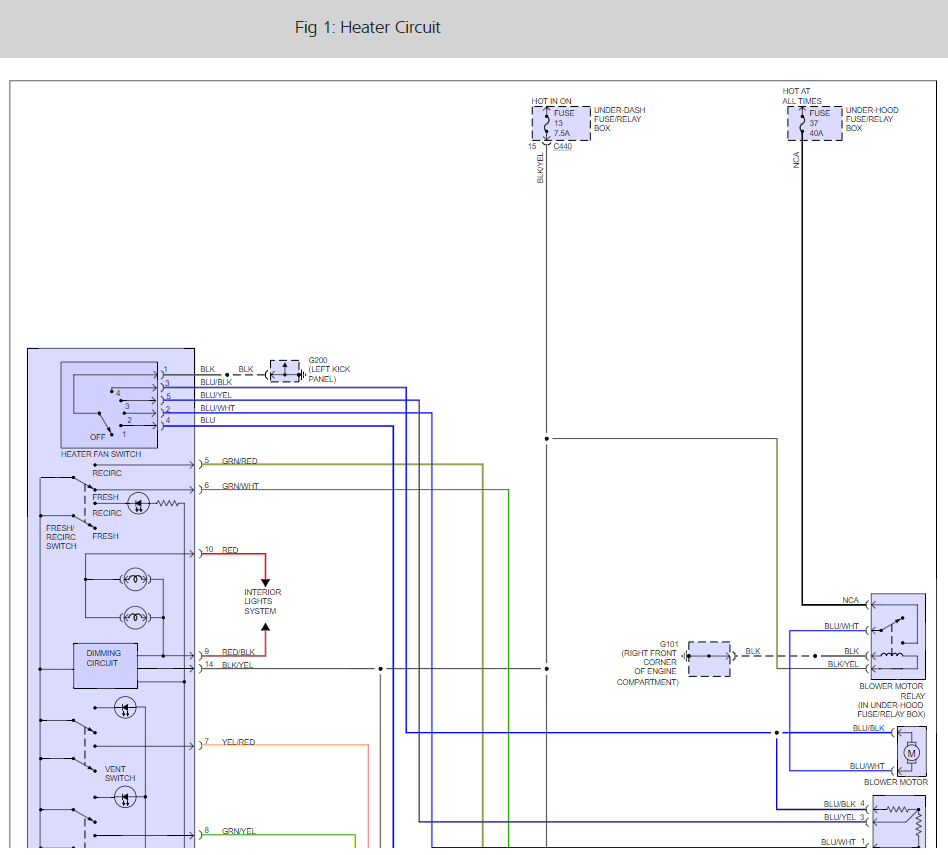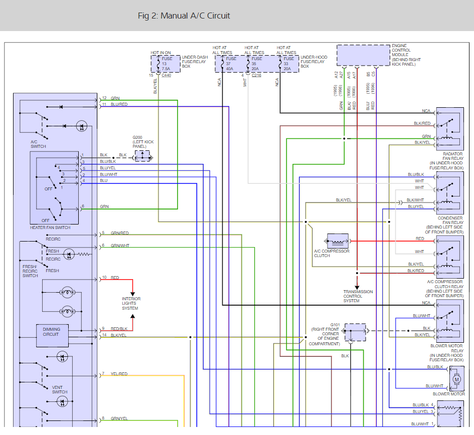 The A/C control button had no power. The fuses are good but no lights on button and no fan running. Any idea?