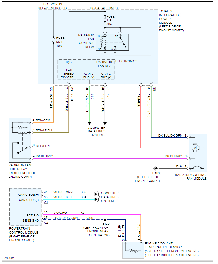 Does the fan come on at all? If you look at the attachment it will turn on based on the temp sensors or the AC being turned on. If it doesn't turn on at all then it could be a number of things. Could be the TIPM, relays, PCM not commanding it on, or the fan motor.