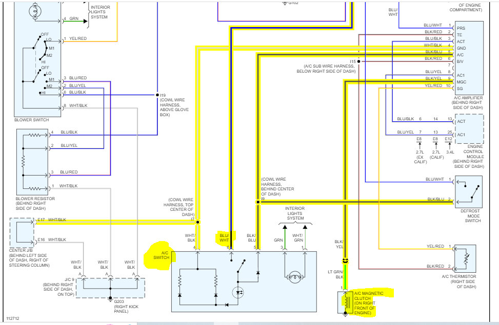 I attached the wiring schematic below, so you have a reference. I highlighted several wires when trying to determine where there could be an issue, so please ignore them.
