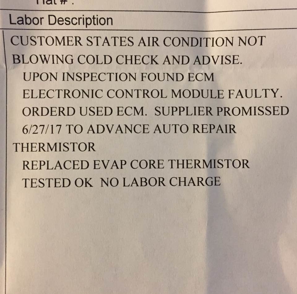 Three mechanics have looked at it recently. The compressor works. No Freon leaks. They think it is electrical. Replaced the computer. Still does not work. New mechanic is painstakingly tracking backward to see where the problem is. He thinks it may need a thermo switch (see attached photo). Something about telling the A/C when to blow cold air?
