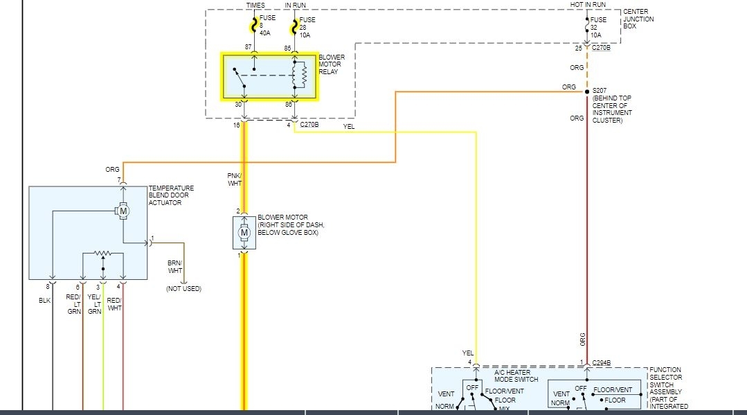 I attached a wiring diagram for you to view. Check both fuses listed for power to the blower relay. Then check for power to the blower motor itself.