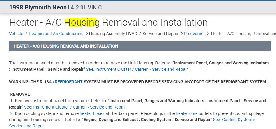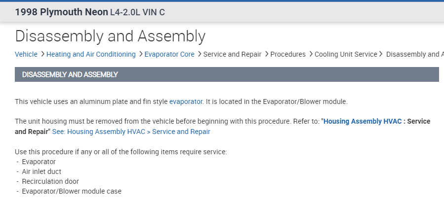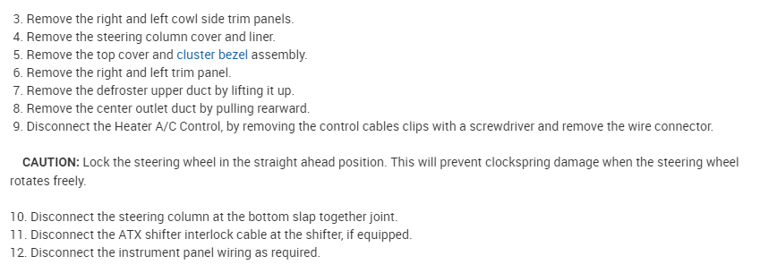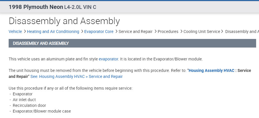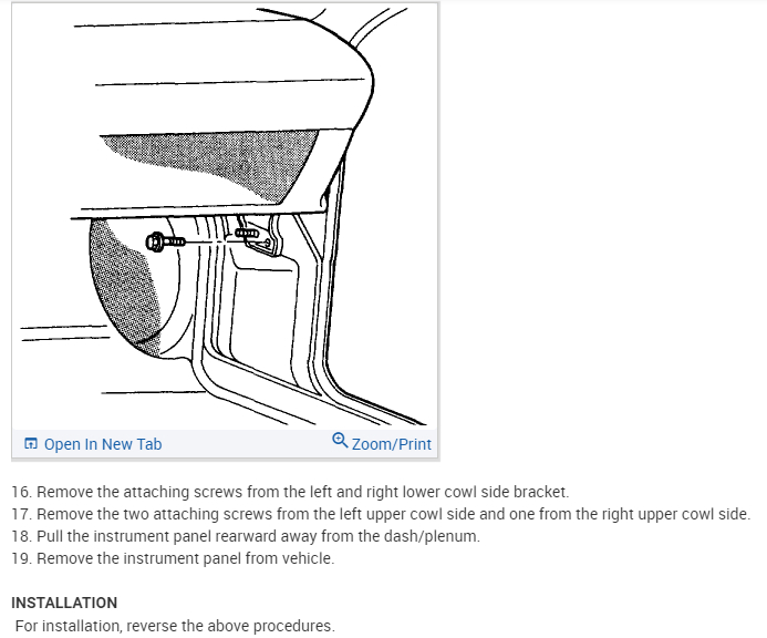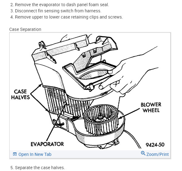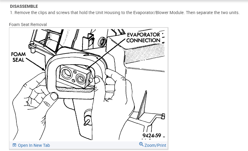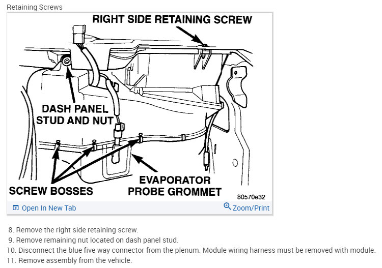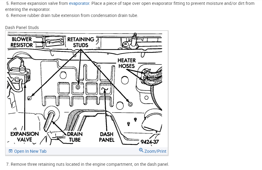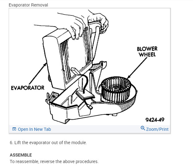 Take a look below. I attached the directions for replacing the instrument panel. Please understand, the directions specifically indicate to remove it. However, take your time and loosen the retainers that will allow you the room to replace the evaporator. You are not replacing it, but these are the directions I have to use.