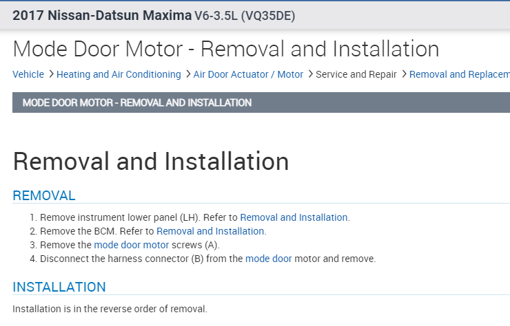 I attached the directions for the removal and replacement of the actuator. The directions indicate you need to remove the lower instrument panel cover and the body control module (BCM),