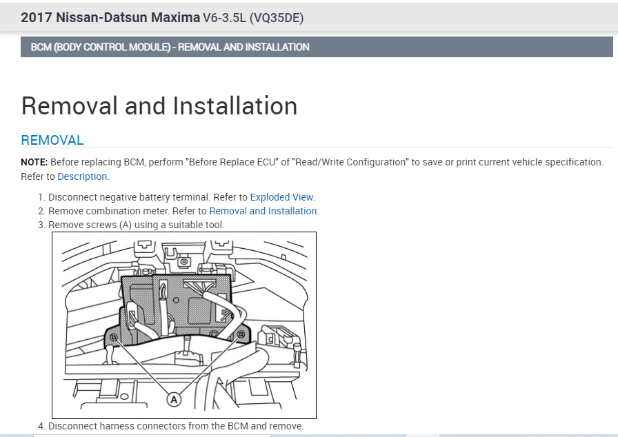 Note: The directions indicate disconnecting the BCM. If it is possible for you to simply move the BCM out of the way without disconnecting it, do that. If you have to disconnect it, make sure the battery is disconnected prior to disconnecting and reconnecting the module.