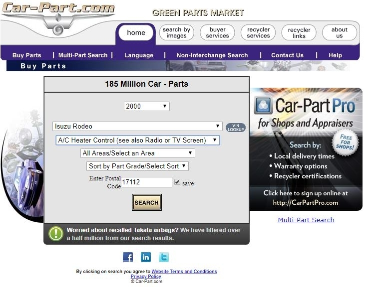 Start at the beginning with year make model and part number. Then add your zip code and it will show parts in your area.