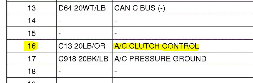 If there is no power, we need to go to the TIPM, remove it from its mount, and disconnect connector 1 (C1) which will be black in color. Locate pin 16 and inspect it for damage, corrosion, make sure the pin isn't pushed in, and so on. If it is in good condition, check to see if it has 12v when the AC is turned on.