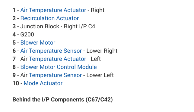 I have included in the diagrams and this guide down below the locations of the Heating Ventilation and Air Conditioning actuators for your vehicle as well as the instructions for the removal and installation of the Mode Actuator for your vehicle. Here is a link to a generic guide for you as well: