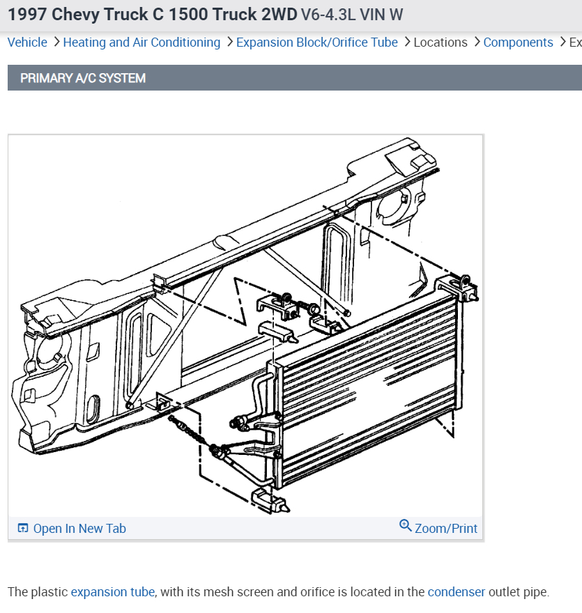 Bought this truck owner said the A/C did not work. So, I ordered compressor condenser, accumulator, orifice, both hoses, flushed evaporator coil inside truck, installed pulled vacuum on gauge- 29/30 held for over hour ran vacuum again for about another hour. Then started to fill and just after first can high side just jumped like to 450 and fluctuated stop. Did recovery and checked in side condenser and somehow orifice sucked down into corner of the condenser, I did get it pulled out."run time with high side high was maybe 15 minutes" reinstalled and put back together pulled vacuum everything the same. So, today I started to charge it again now low side reads 95 high side also 95, it's around 80 degrees out, it is a bit cooler in cab but not much, clutch fan works as it should, and I'm not 100 %on the hot/cold switch in the dash. I am just wondering if you have any good answers. Oh, yes, the first time my low side was a bit high but figured it was because of the high side. Thank you for your time.