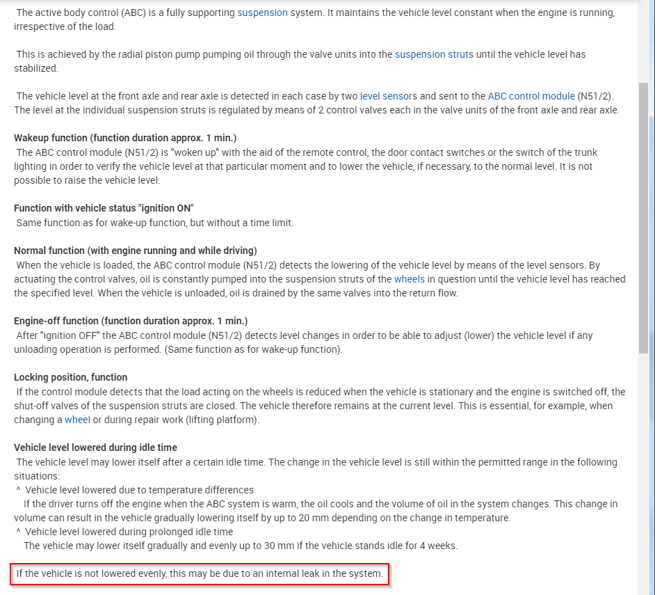 One year ago I have changed the ABC hydraulic struts to normal one, nothing else been changed and it was something worse, again I returned back the ABC Hydraulic and checked for any leak but seems everything is okay.