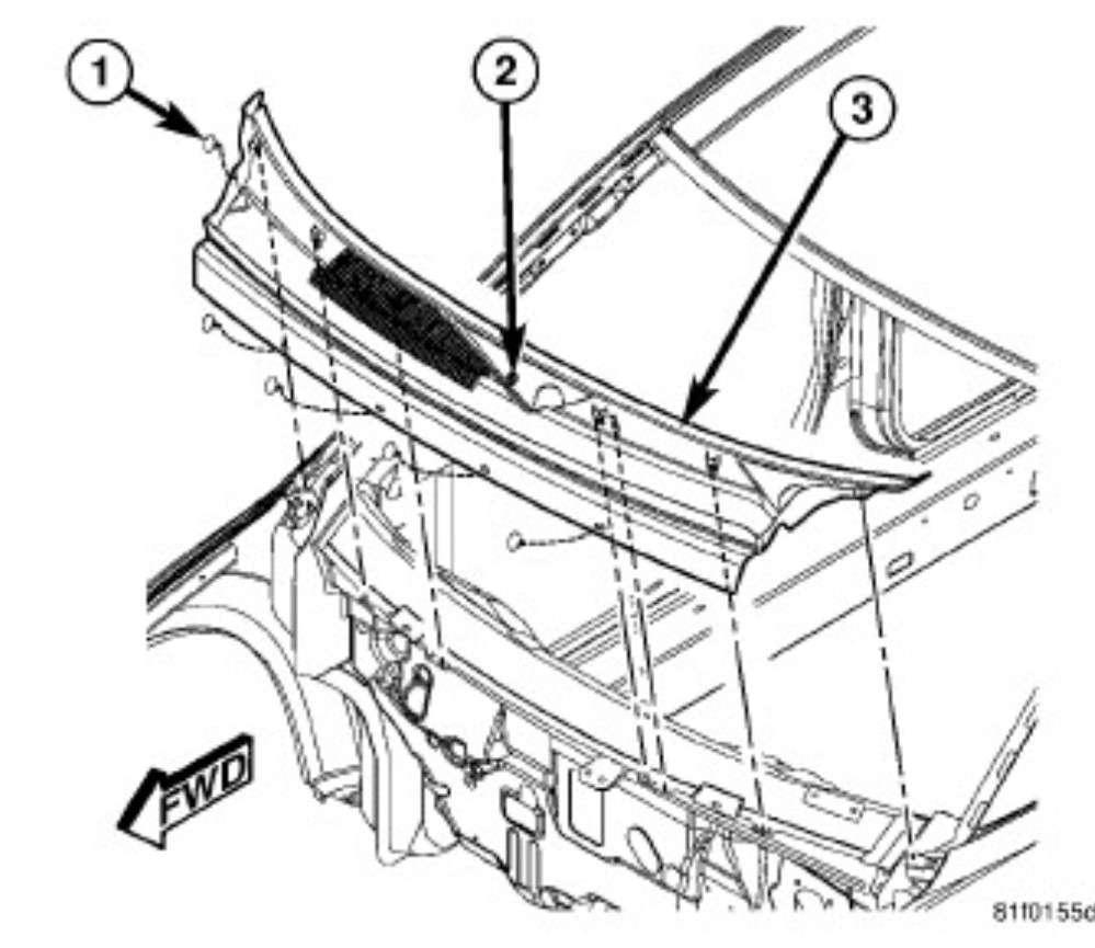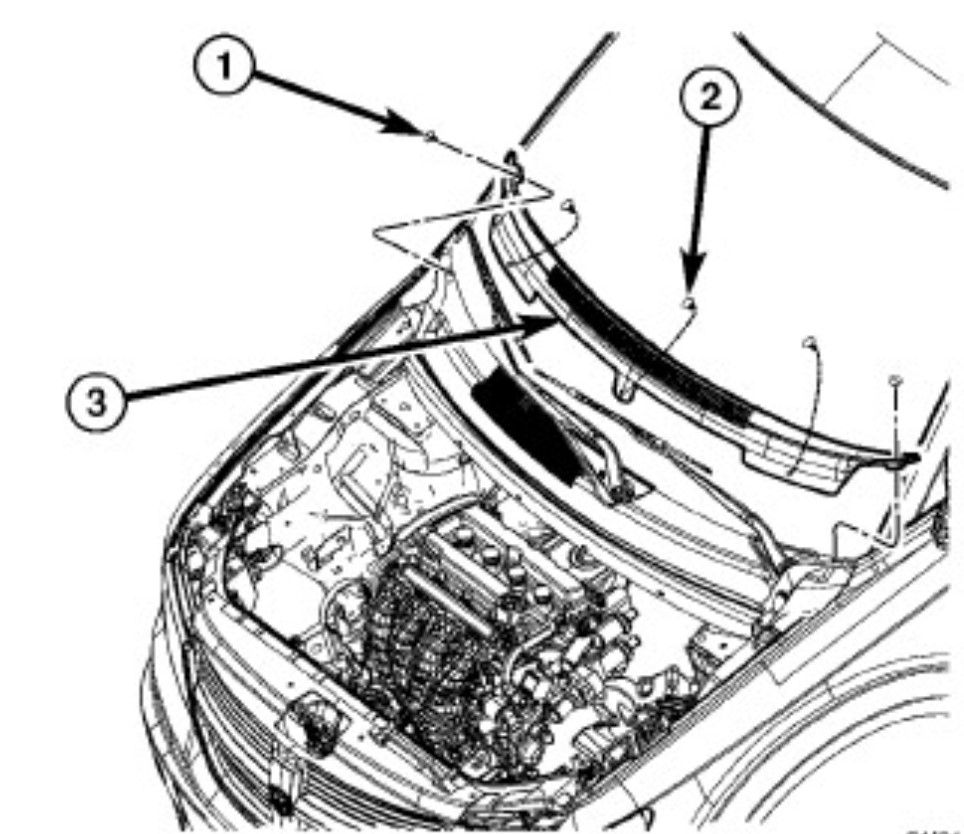 C2200-49-ANTI-LOCK BRAKE MODULE - INTERNAL ELECTRONIC FAILURE is the module itself shows an internal error and has shut off, in turn it turns on the ABS and traction lights as both systems use that module. The first thing is write that code down, then use a scan tool to erase it. If it is a hard fault the light will come back almost instantly. The module can be replaced without removing the brake lines but it isn't a fun repair due to the location of the module where it is buried back under the cowl. I generally don't short cut this one because it's a tight fit. That starts with removing the cowl panel and support to get room to work on it easier than through the gap. You start by removing the top cowl trim and the wiper arms. The arms use a nut to secure them to the wiper transmission, The trim caps lift up and then you hold the arm and remove the nut. If they stick a quick hit with your hand on the hinge point will usually pop them off the taper. Now you remove the push pins that secure the lower cowl screen. Then finally you remove the cowl brace bolts and set it aside.