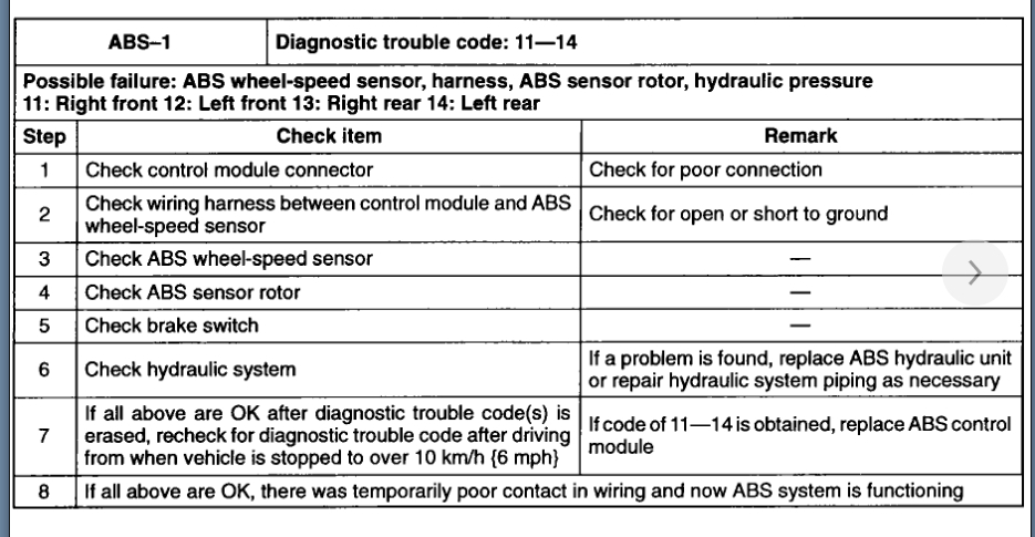11 - Right Front Wheel Speed Sensor Open circuit or Short to power supply