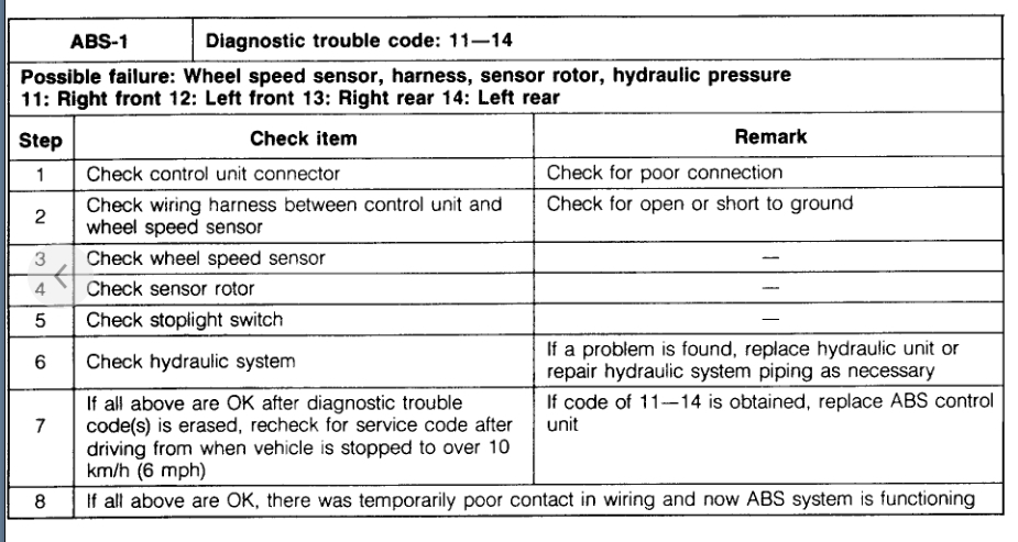 14 - Left Rear Wheel Speed Sensor Open circuit or Short to power supply