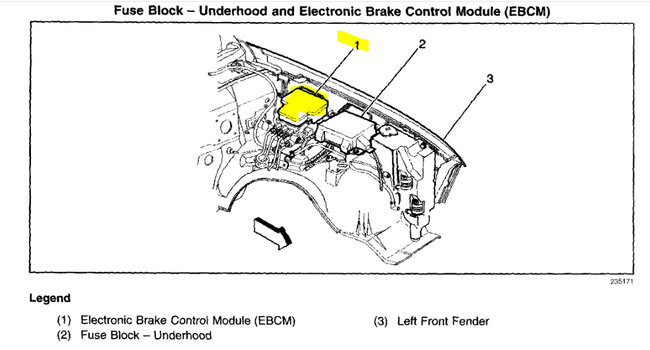 The EBCM is located under the hood on the driver's side inner fender. I attached a picture below showing its location.