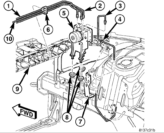 Well I have called them a few different names but most are not real friendly. Other than that Chrysler usually calls the ABS system the "electronic brake control module and the hydraulic control unit". The EBCM is the electronics and solenoids while the HCU is the pump and mechanical parts. The combined unit is number five in the picture.
