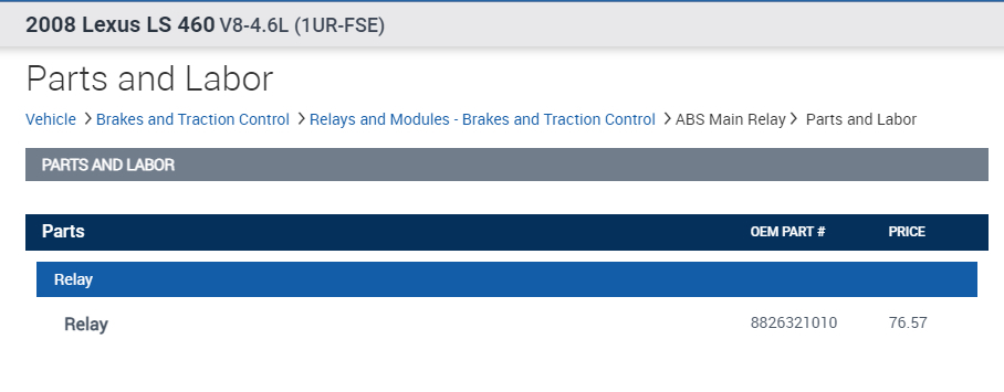 Can you find out for me the part numbers for the two ABS relays on this car, one on the right and one on the left side of the car under the hood.