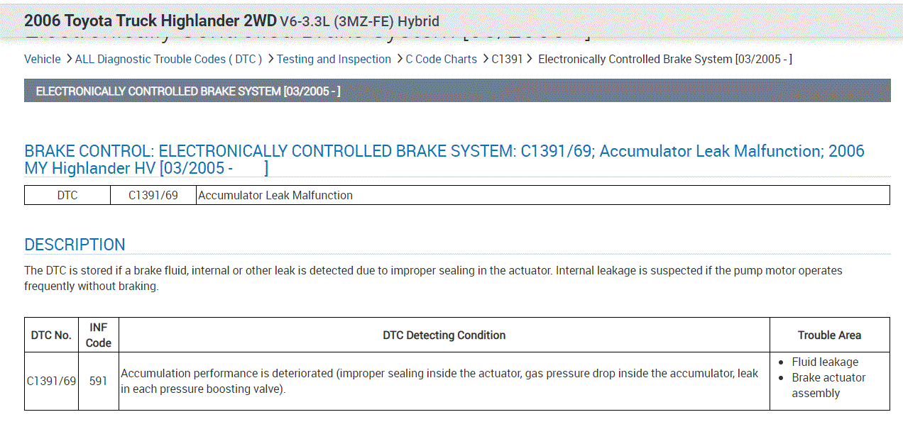 Am familiar with these abs actuator pumps going out, in most prius, and other toyota and lexus vehicles. Usually accompanied by a weird brake pedal feeling. This one feels fine, lights go off after 12 miles of deleting. Usually there are several codes tied up together, but this one only has the c1391. Are there any other reasons for this code other than a bad internal leak in the actuator?