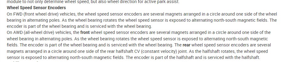 Then the speed sensors pick up the speed of the wheel bearing due to magnets with alternating poles so the speed sensor can see how fast the bearing is spinning. If you replaced the bearing, what was the part number and who did you get it from? We need to make sure it is the correct part.