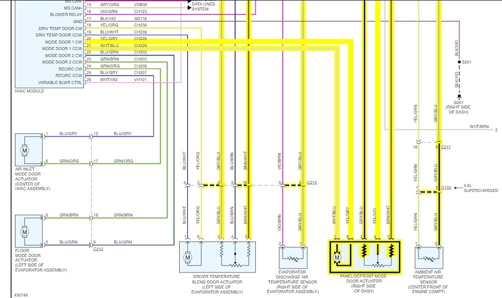 3. Reposition the panel/defrost door mode door actuator and disconnect the panel/defrost door mode door actuator electrical connector.