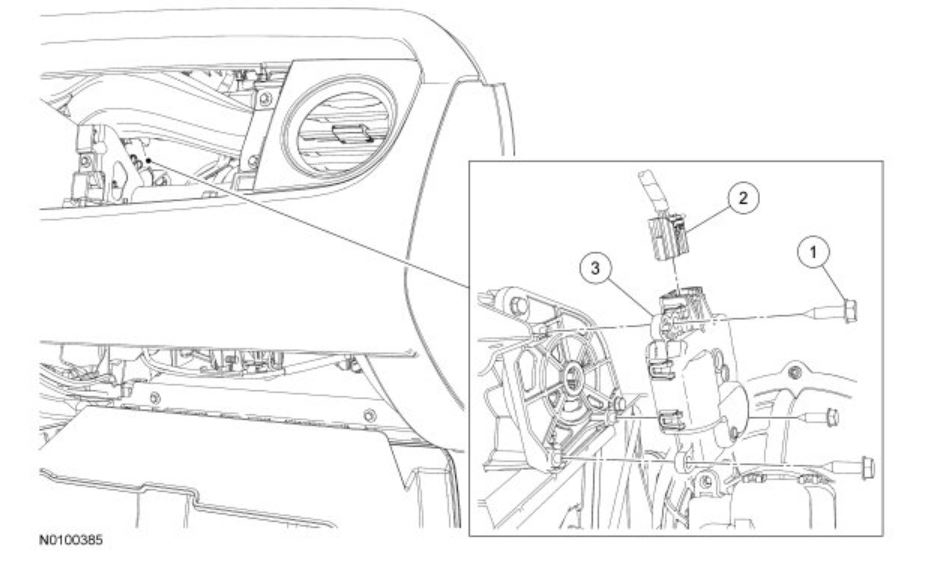 1. Remove the passenger airbag module. For additional information, refer to Section 501-20B (SEE Restraints and Safety Systems &/or Air Bag Systems).