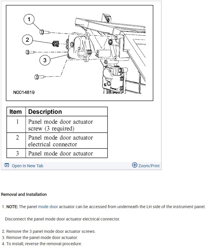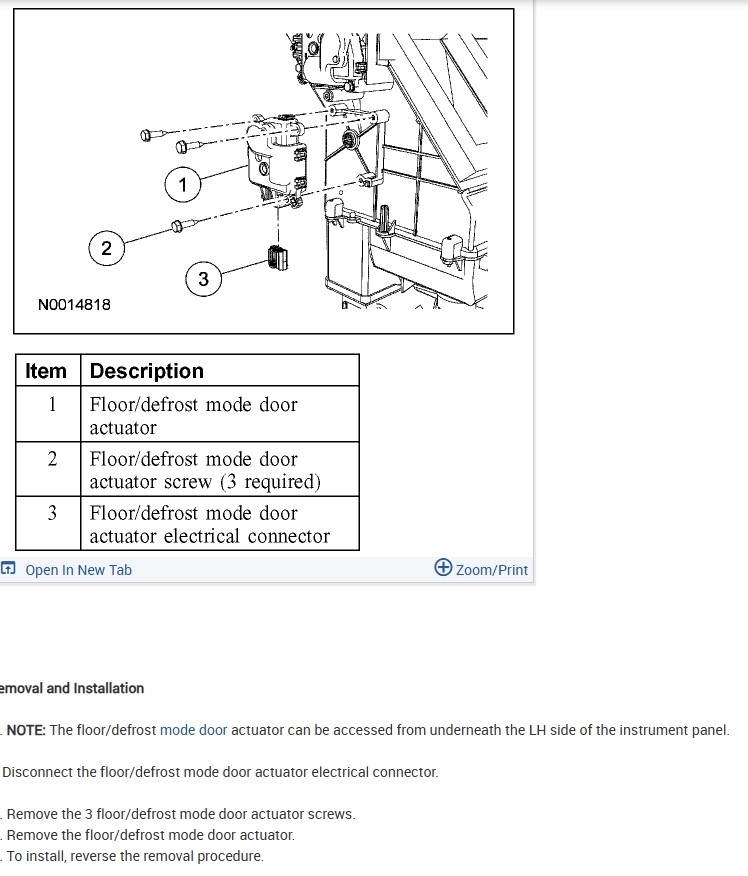 Which one? There is one that selects floor or defrost, that one is on the left side of the HVAC case just above the footwell, the actuator that selects the front panel vents is just above it the attached are the locations and r&r process.