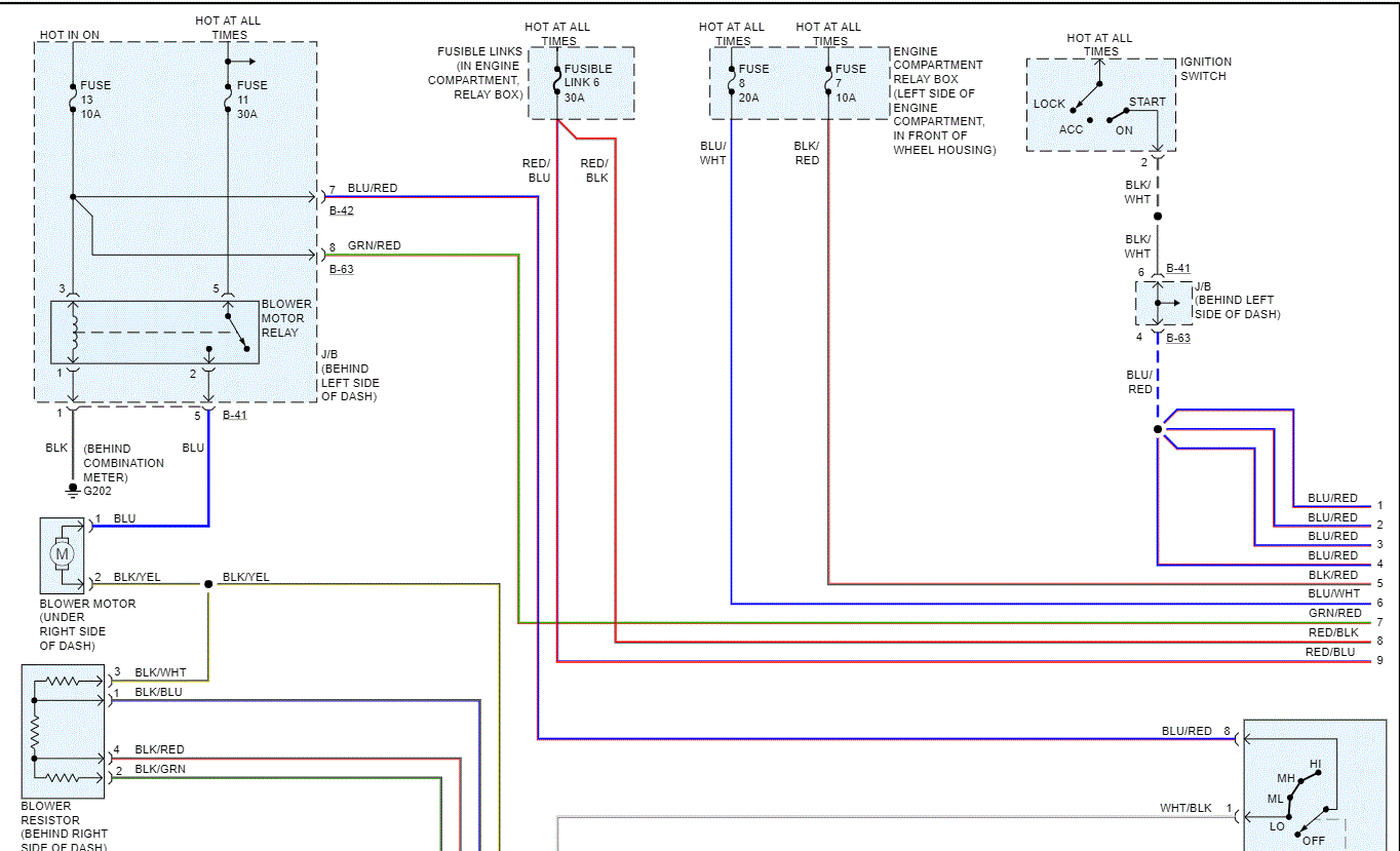 IF there is power to the fuse, then see if there is power to the blue wire that connects to the blower motor.