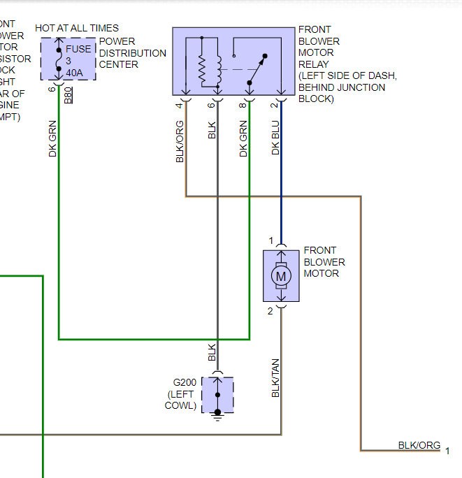 The blower relay is intact, but won't run the blower when the park light relay is not inserted in the terminal.