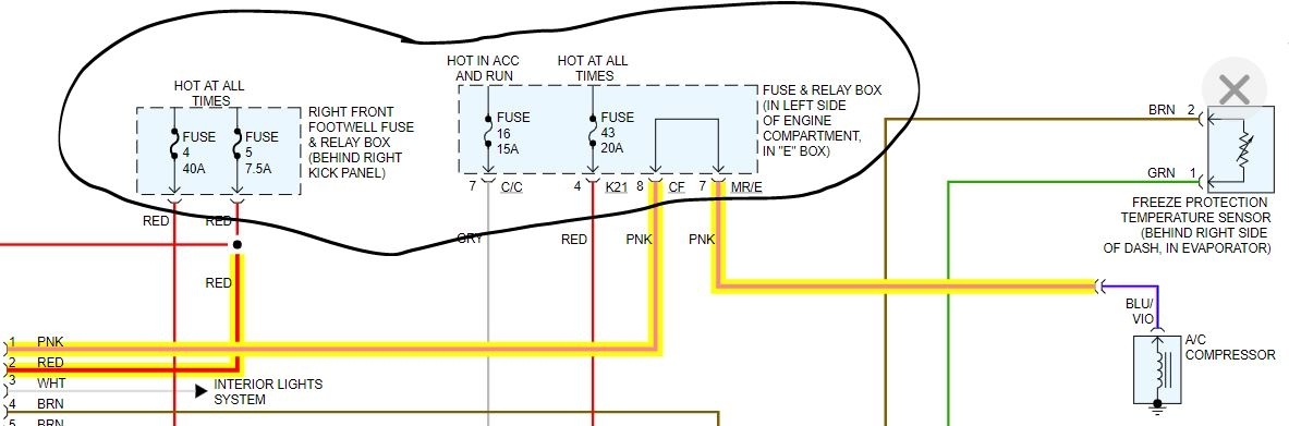 My A/C was working fine, and then one night my dash lights went out. I found out that fuse 44 had blown (it's also connected to the aux recirculating fan, which I found had a leak, I've ordered another one). However the A/C is not blowing cold, and from what I have read, the aux pump, has nothing to do with A/C. Any suggestions?