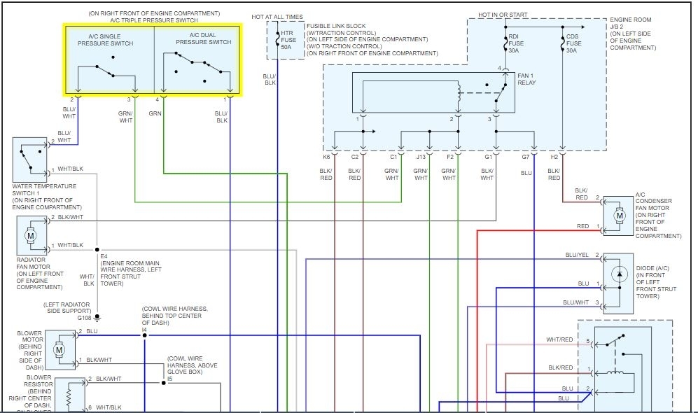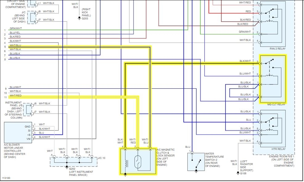 When I push the A/C button it makes a sound like something tries to open but doesn't. The green light on button comes on but no A/C.