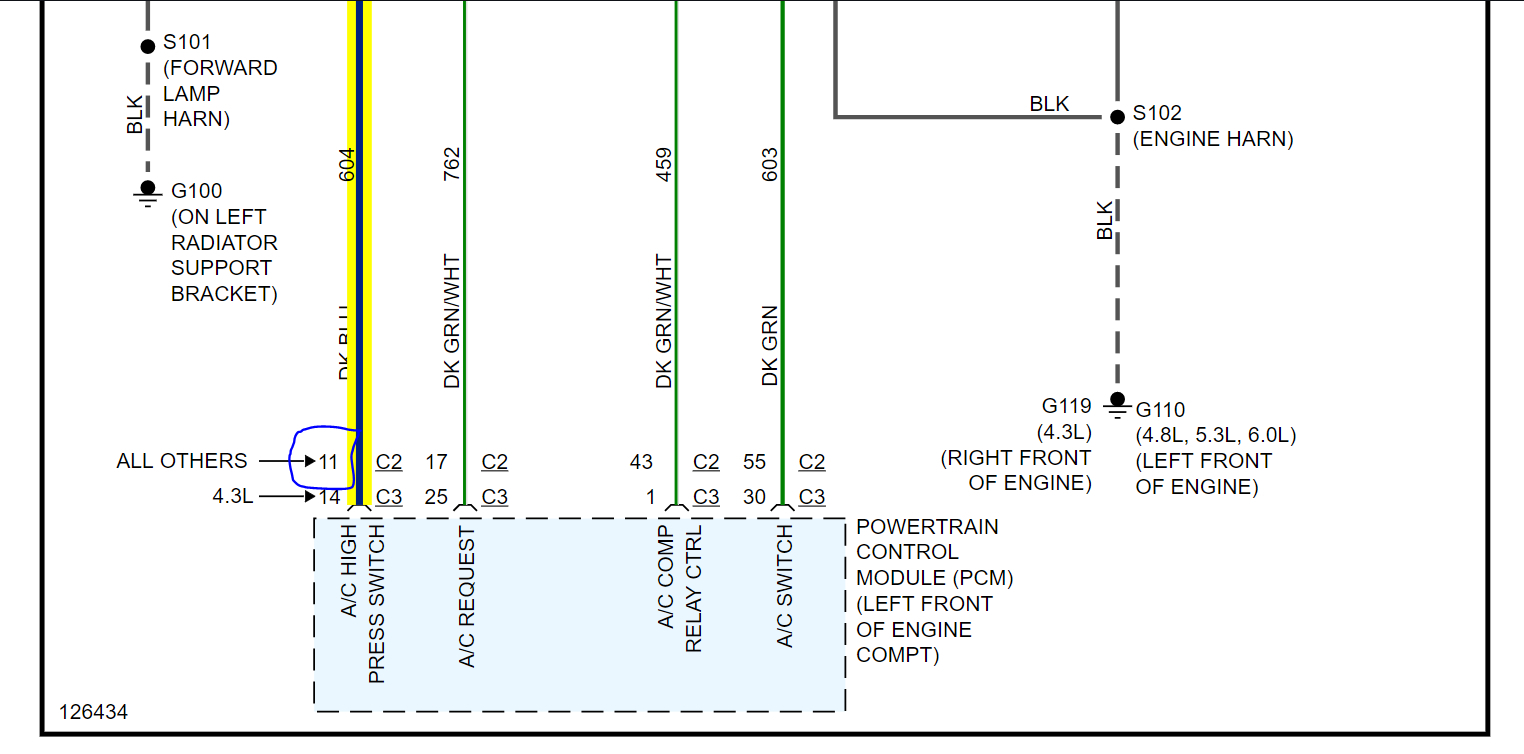 Pin 55 Low Pressure switch is grounded all the time. Unless I unplug the low pressure switch then it would have power.