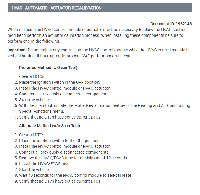 Here is how you can recalibrate the blend door actuators