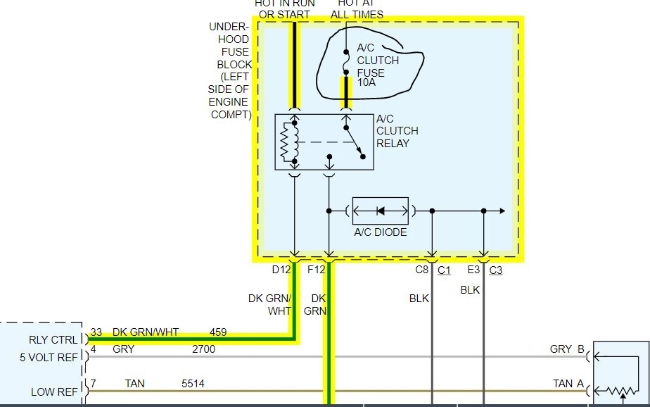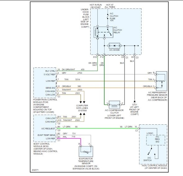 It just blows hot air, it does not work at anytime. I checked the relay the fuse the fan seems to be working. I also used Freon and pressure is where it's supposed to be. What could it be?