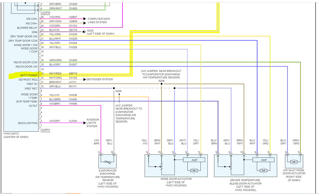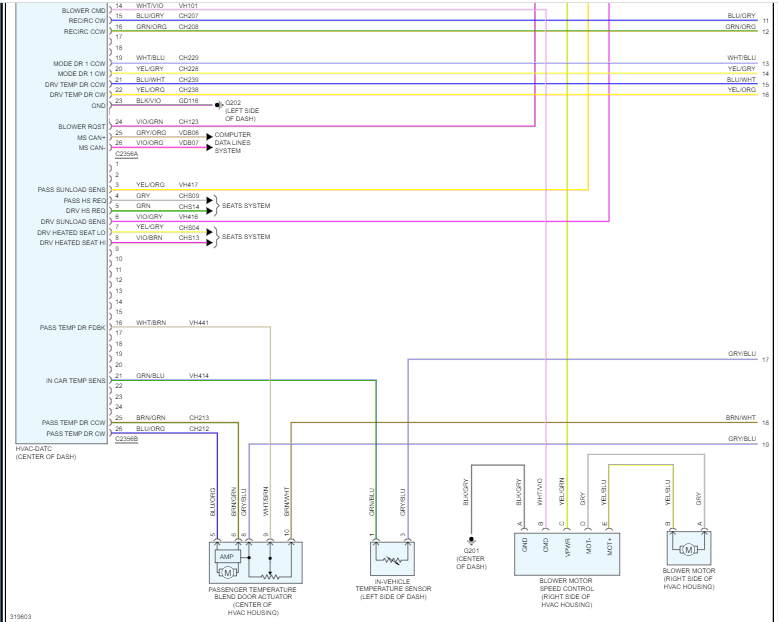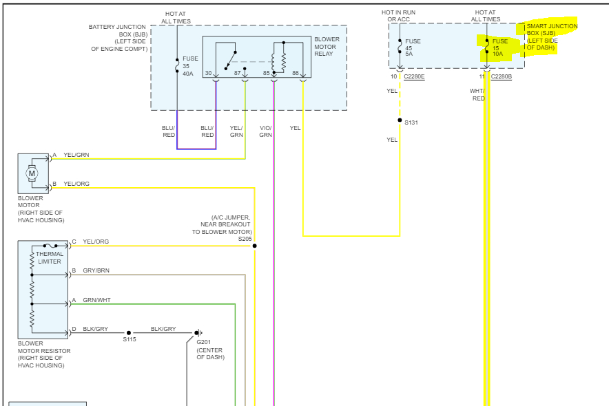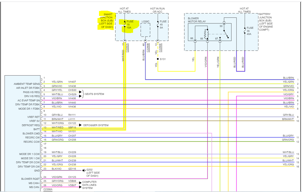 See pics below. Note: The wiring schematic is for a 4-cylinder, non-hybrid, with manual climate control.