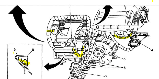 Also, if you look up under the dash (passenger side I believe), you will see where one of the plastic vacuum hoses goes through the firewall into the engine compartment. Follow it to the engine and inspect it for damage as well.