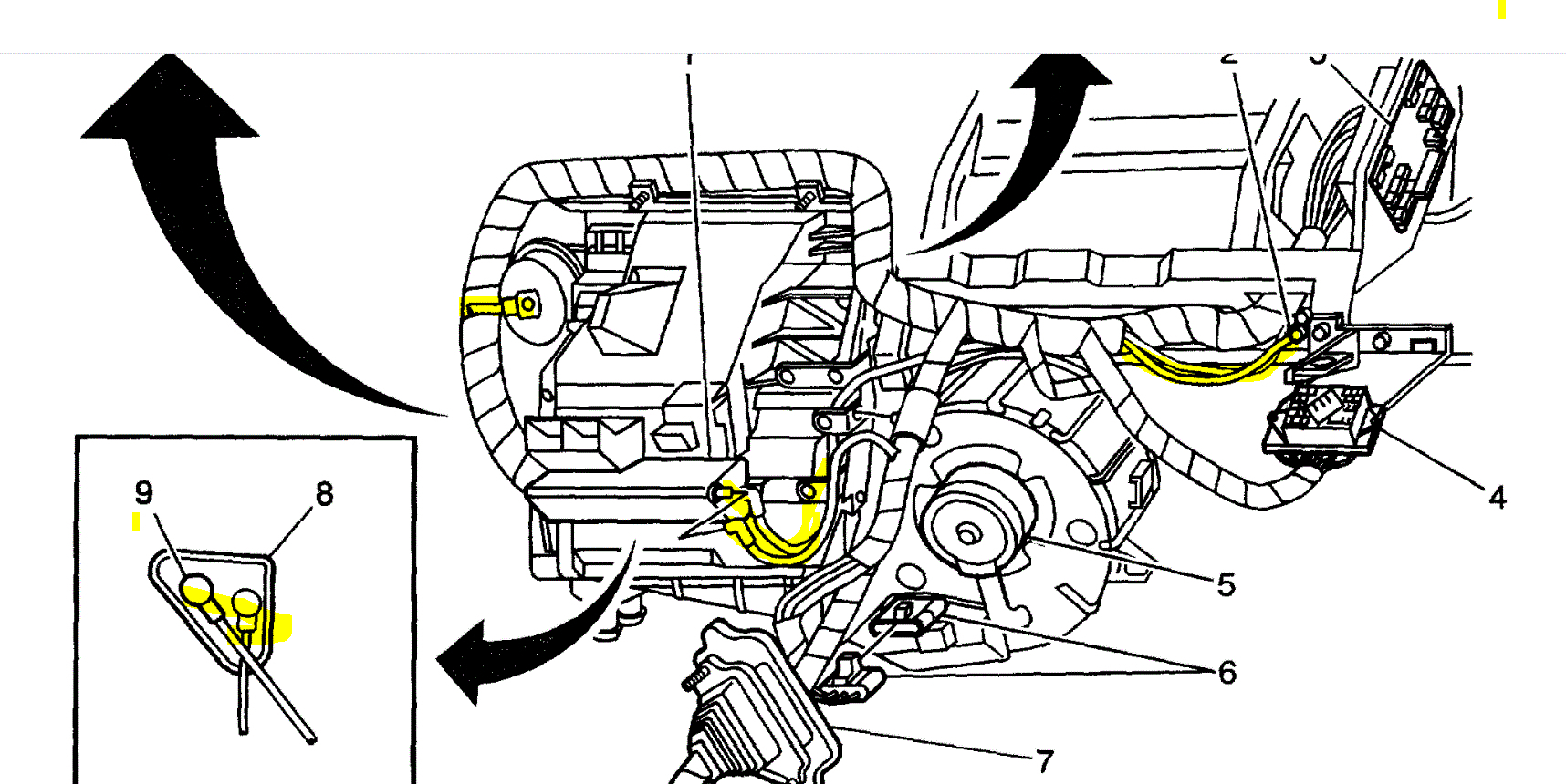 If you look at pic 1 below, it shows the rear of the heater controller on the dash. I highlighted where there is a vacuum harness. First, start the engine. Turn everything off and see if you hear a hissing sound or anything that may indicate a vacuum leak.
