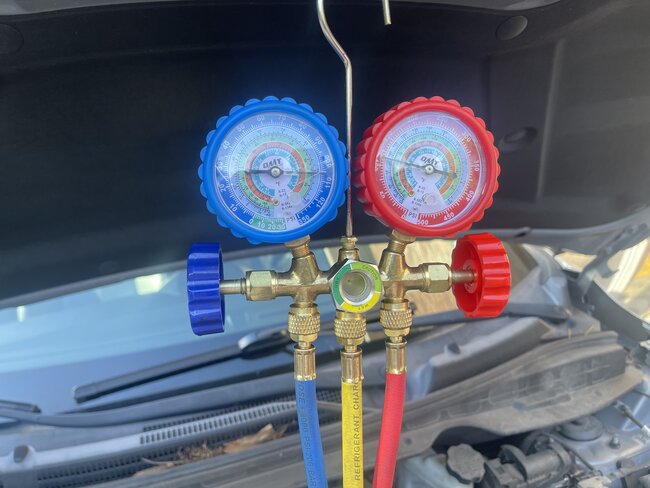 Ac ports for both showing same 110psi ac compressor comes on, hot air. Trued to release the pressure from low sude then checked when at 60psi same thing tried to add more nothing happened. Fan comes on