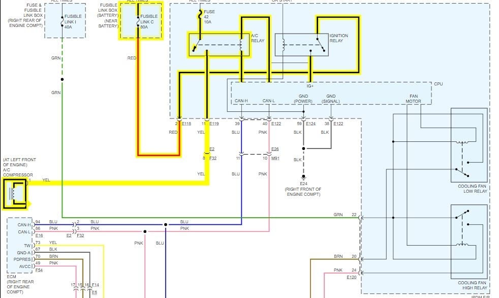 Note: The compressor relay or A/C relay is located in the IPDM (intelligent power distribution module) and is not serviceable.