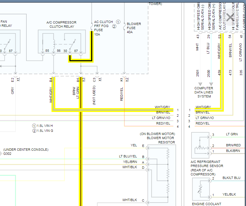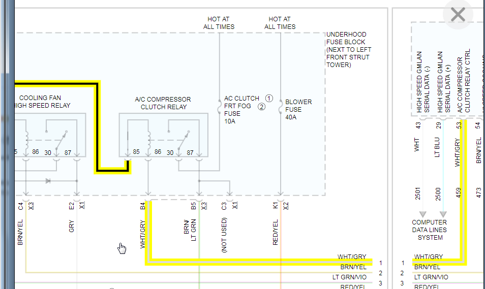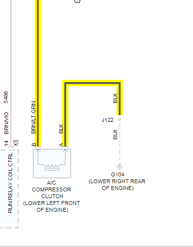 The ECM grounds the coil in the relay through terminal 86 which closes the contact on terminal 30, to engage the clutch through terminal 87.
