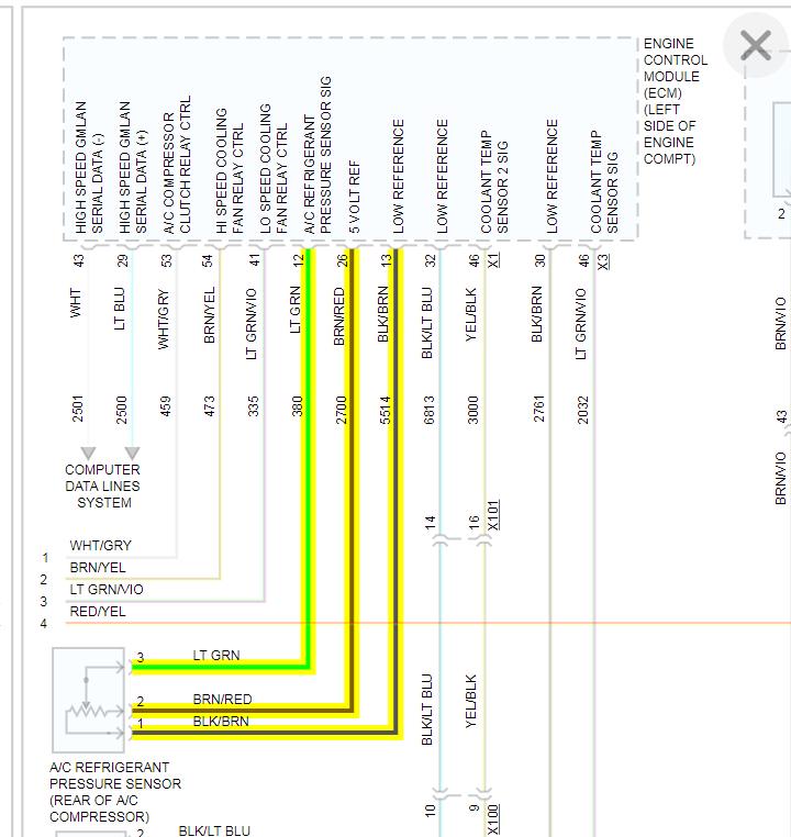 These sensors are pretty cheap if you just want to replace it. If you want to test it, you need to monitor voltage on all three wires. Just back probe the sensor with it plugged in and AC on and let me know what you have on each wire.