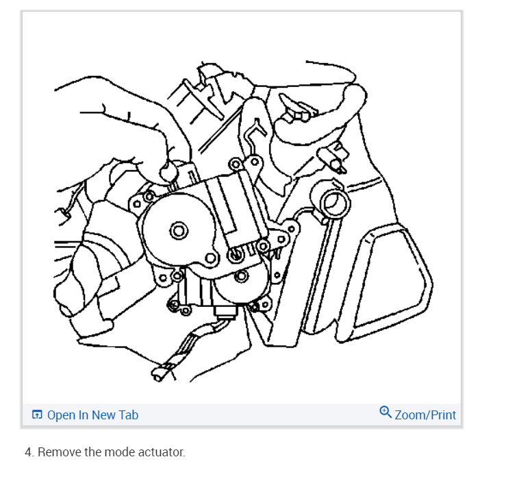 It sounds like you have a mode blend door actuator that is not working. But to be sure lets remove it to watch the operation when the system is turned on, here is the location. Check out the diagrams (below). Please let us know what you find. We are interested to see what it is.