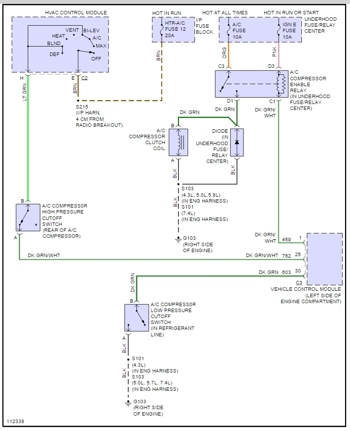 The air conditioner compressor is not getting power, I used a power probe to apply power to compressor and the compressor kicks on and blows cold air, I then went to the relay and was able to jump terminal 87 to 30 with power probe and once again the compressor kicks on and blows ice cold, not sure where to go next.