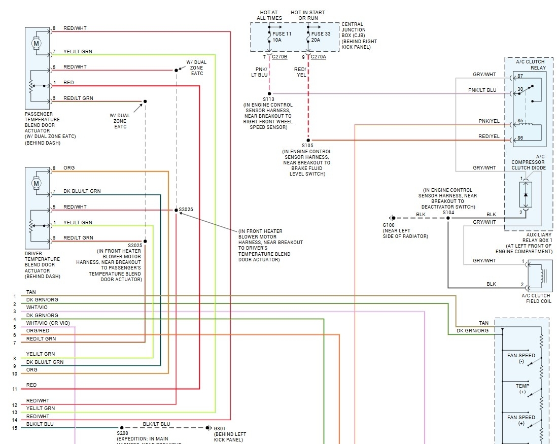 Attached are the wiring diagrams for the HVAC. Yes, the PCM turns the clutch on and off, but the relay should have battery voltage on pins 30 (constant bat) and 86 (key on). There are a lot of sensors and switches that can tell it not to turn on the A/C as well. It sounds like the clutch and its power circuits are okay as you did have it working. So, the next step would be to see if the switches and sensors that control the PCM are the issue (likely are).