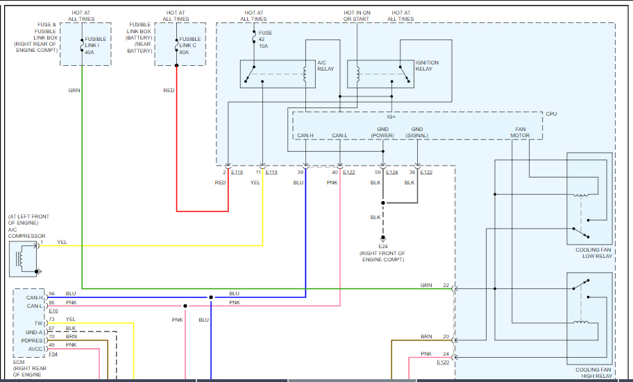 A/C clutch is not engaging. Coolant pressure is high. Did not add any to system. Just replaced fan motor resistor. A/C was working before. Could you please give the wiring diagram for this system? Thanks for your help.
