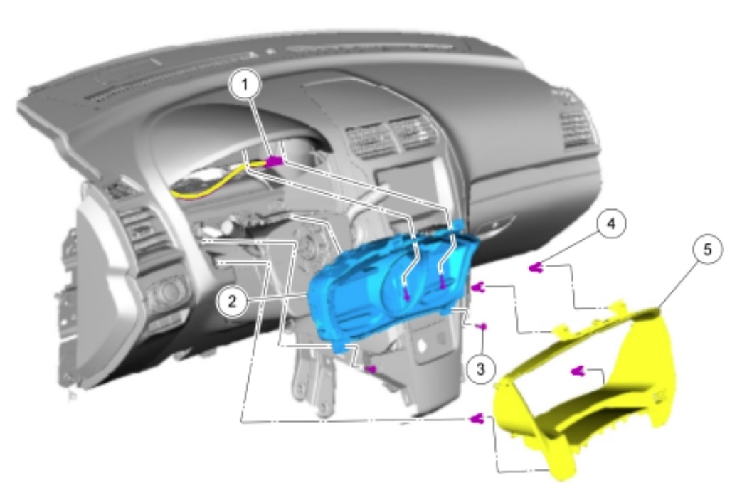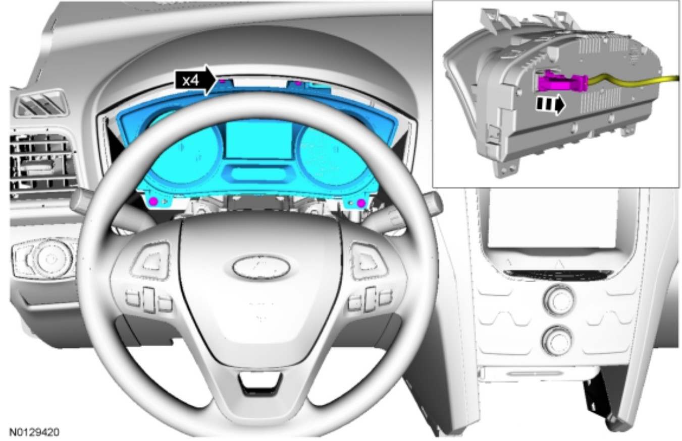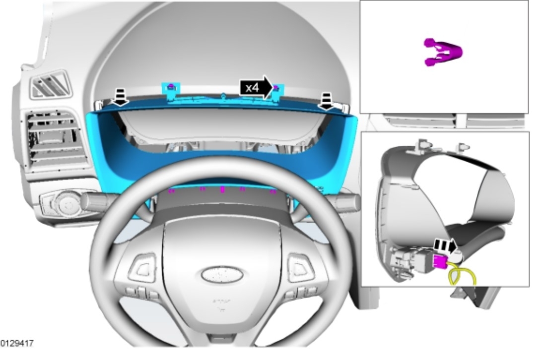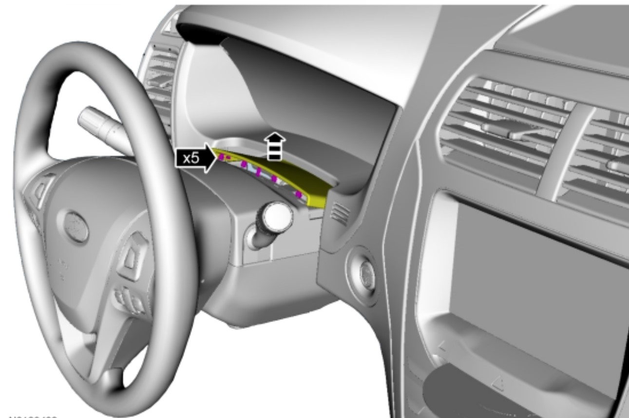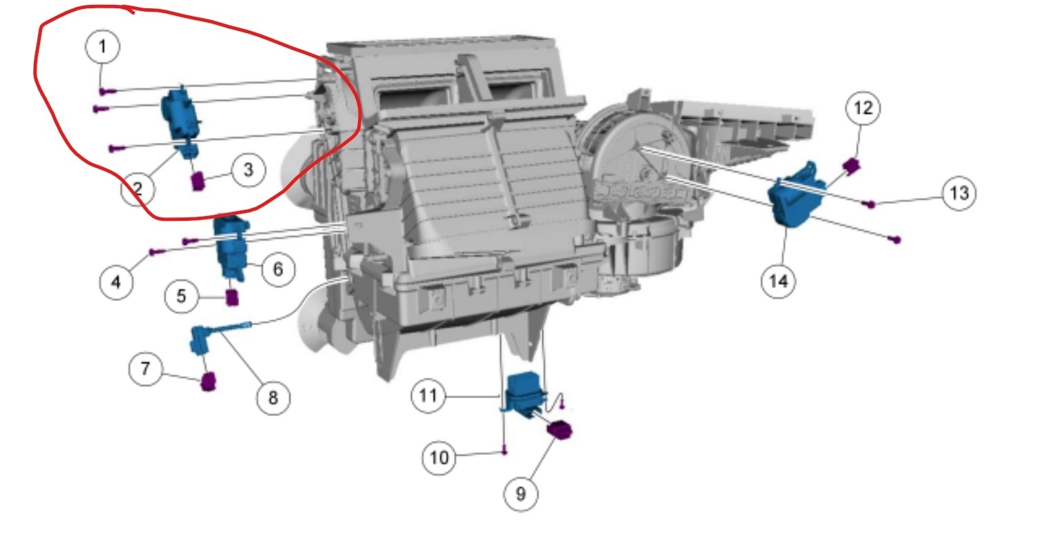 Blend doors control temperature, mode doors control the location the air comes out. The mode doors on that truck are controlled by a single actuator. It is buried in the dash on the side of the HVAC case. To get to it you start by removing the instrument cluster. For that you start by putting the wheel all the way down, then remove the close out strip on top of the column and then the 4 clips that hold the bezel in place over the cluster. Then the screws that retain the cluster and pull it out and set it aside. You will be accessing the upper screw on the actuator through the opening to the side. Next the book wants you to remove the brake pedal and bracket. For that you remove the steering column and then unbolt the bracket. But you can get to the bolts without doing that.